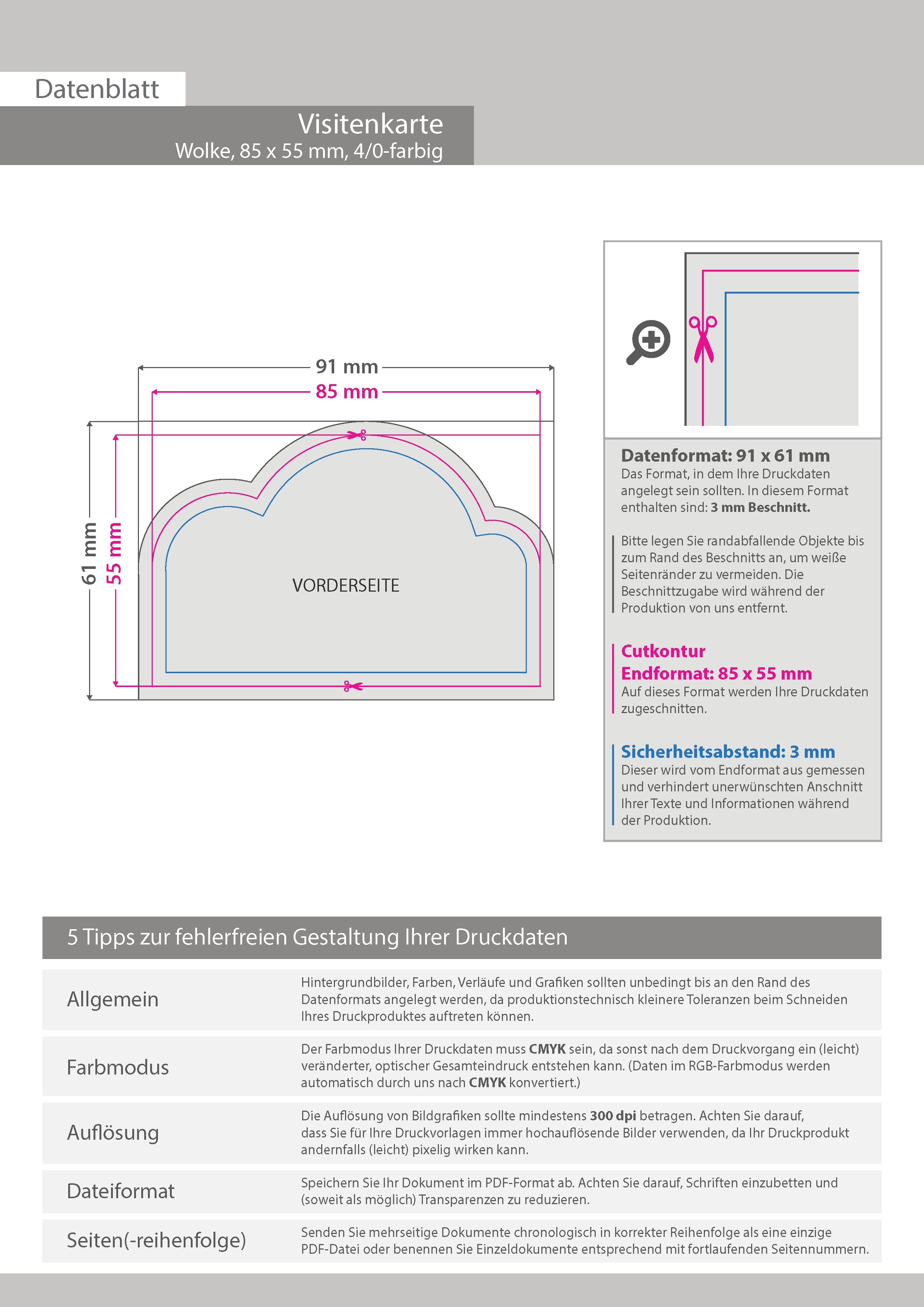 Visitenkarte Wolke, 85 x 55 mm, 1-seitig, 4/0-farbig CMYK