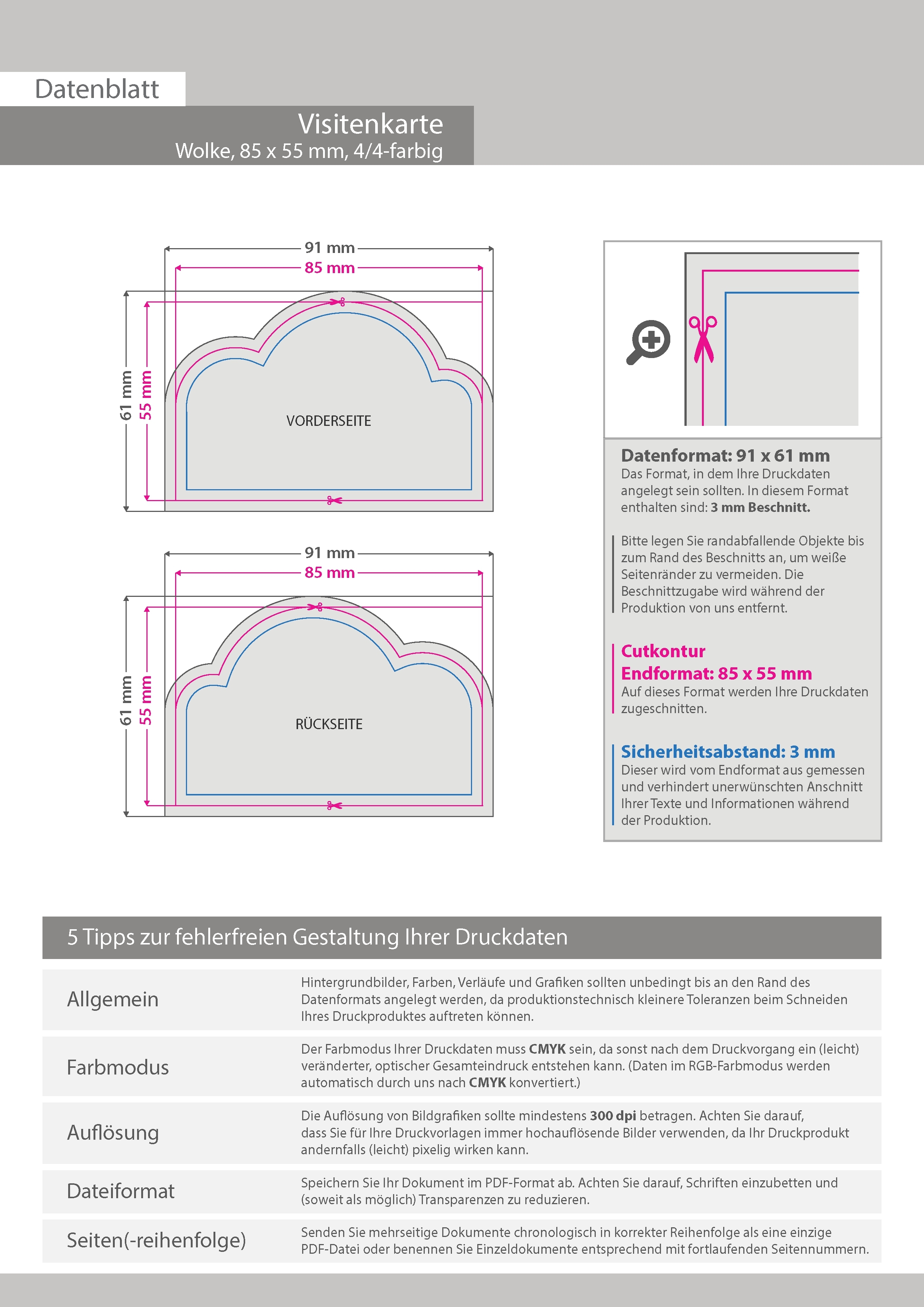 Visitenkarte Wolke, 85 x 55 mm, 2-seitig, 4/4-farbig CMYK